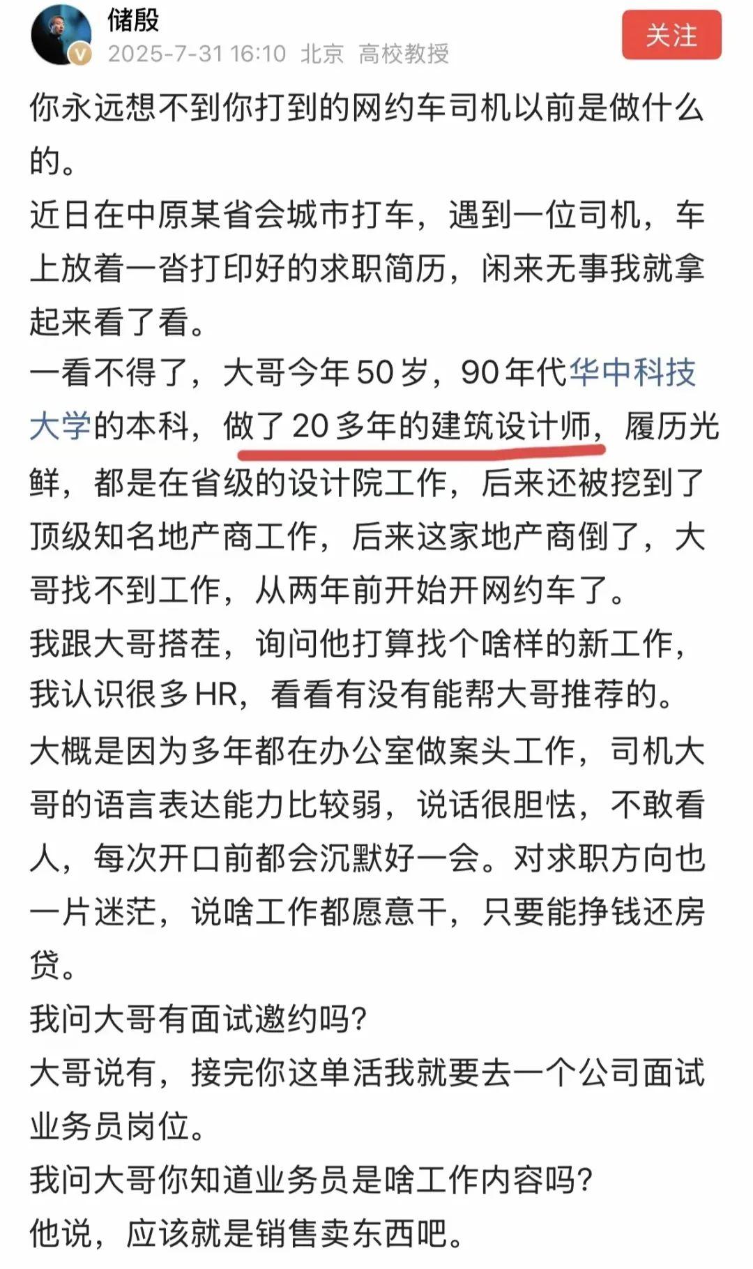 干了20年的建筑师,在开滴滴!